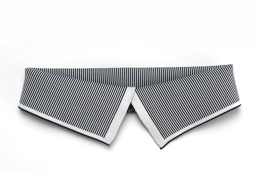 ผ้าถักซี่โครง: ผ้าถักซี่โครงมีลักษณะเป็นเส้นแนวตั้งหรือซี่โครงที่ยกขึ้นซึ่งสร้างรูปลักษณ์ที่มีพื้นผิว ซี่โครงผ้าโพลีเอสเตอร์สแปนเด็กซ์เป็นผ้าถักซี่โครงชนิดพิเศษที่ออกแบบมาสำหรับปกเสื้อและข้อมือ ในขณะที่เนื้อผ้าทั้งสองมีโครงสร้างเป็นซี่โครง โพลีเอสเตอร์สแปนเด็กซ์ที่ปกเสื้อมีสแปนเด็กซ์เพื่อเพิ่มความยืดหยุ่น ทำให้มีความยืดหยุ่นและเข้ารูปได้มากขึ้น