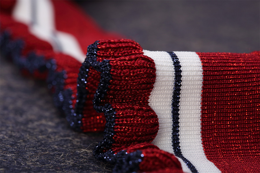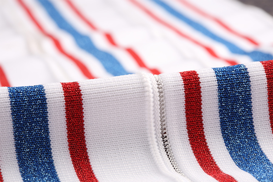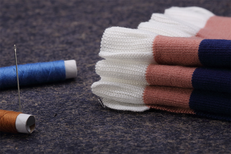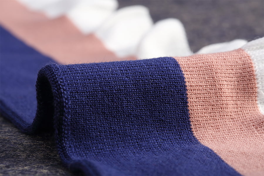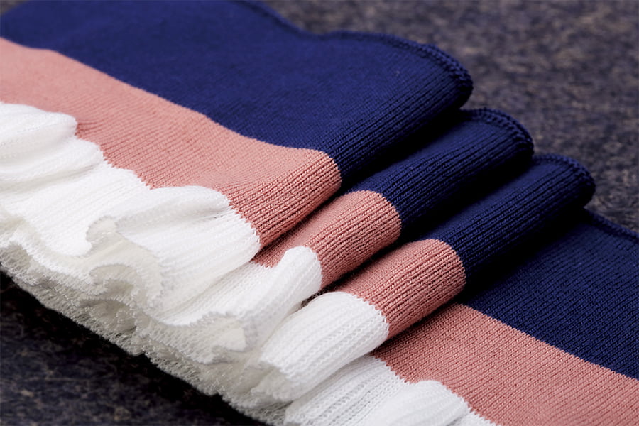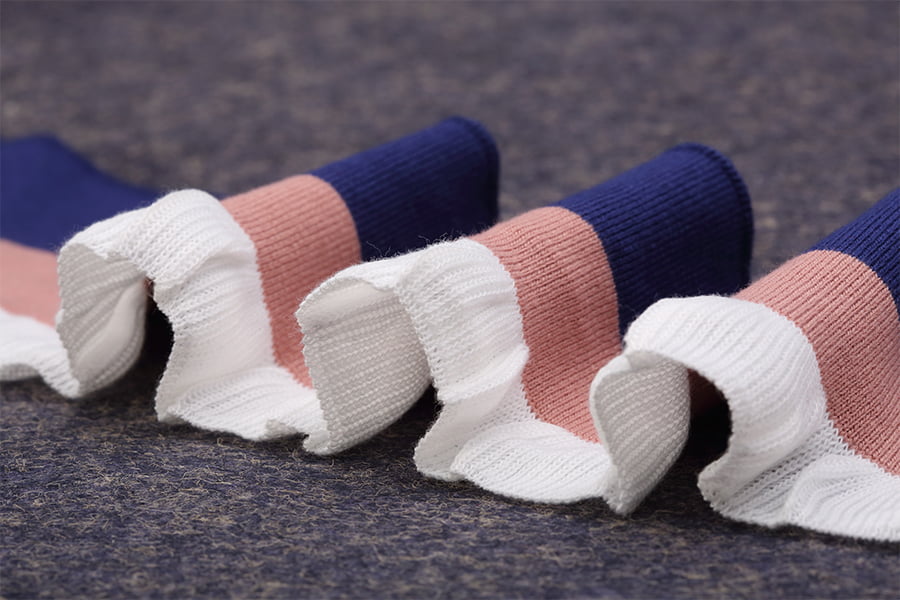 พื้นผิวลายนูนของผ้าโพลีเอสเตอร์สแปนเด็กซ์ข้อมือซี่โครงเพิ่มความน่าสนใจและมิติให้กับพื้นผิวของผ้า ลักษณะพิเศษของลายนูนนี้เกิดขึ้นได้จากกระบวนการถัก โดยที่การเย็บแบบถักและแบบวนสลับกันทำให้เกิดสันหรือโครงที่ยกขึ้น พื้นผิวลายนูนไม่เพียงแต่เสริมความสวยงามของเนื้อผ้าเท่านั้น แต่ยังช่วยรักษาความอบอุ่นอีกด้วย ทำให้เหมาะสำหรับใช้กับเสื้อผ้าที่มีอากาศหนาวเย็น