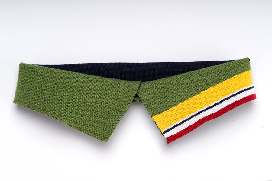• ปกเสื้อเป็นผ้าโพลีเอสเตอร์สแปนเด็กซ์: